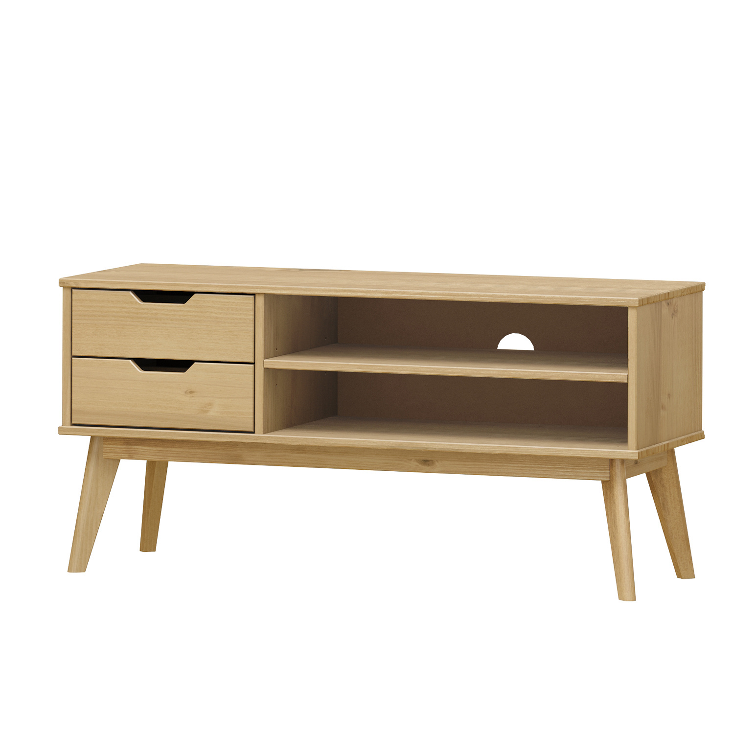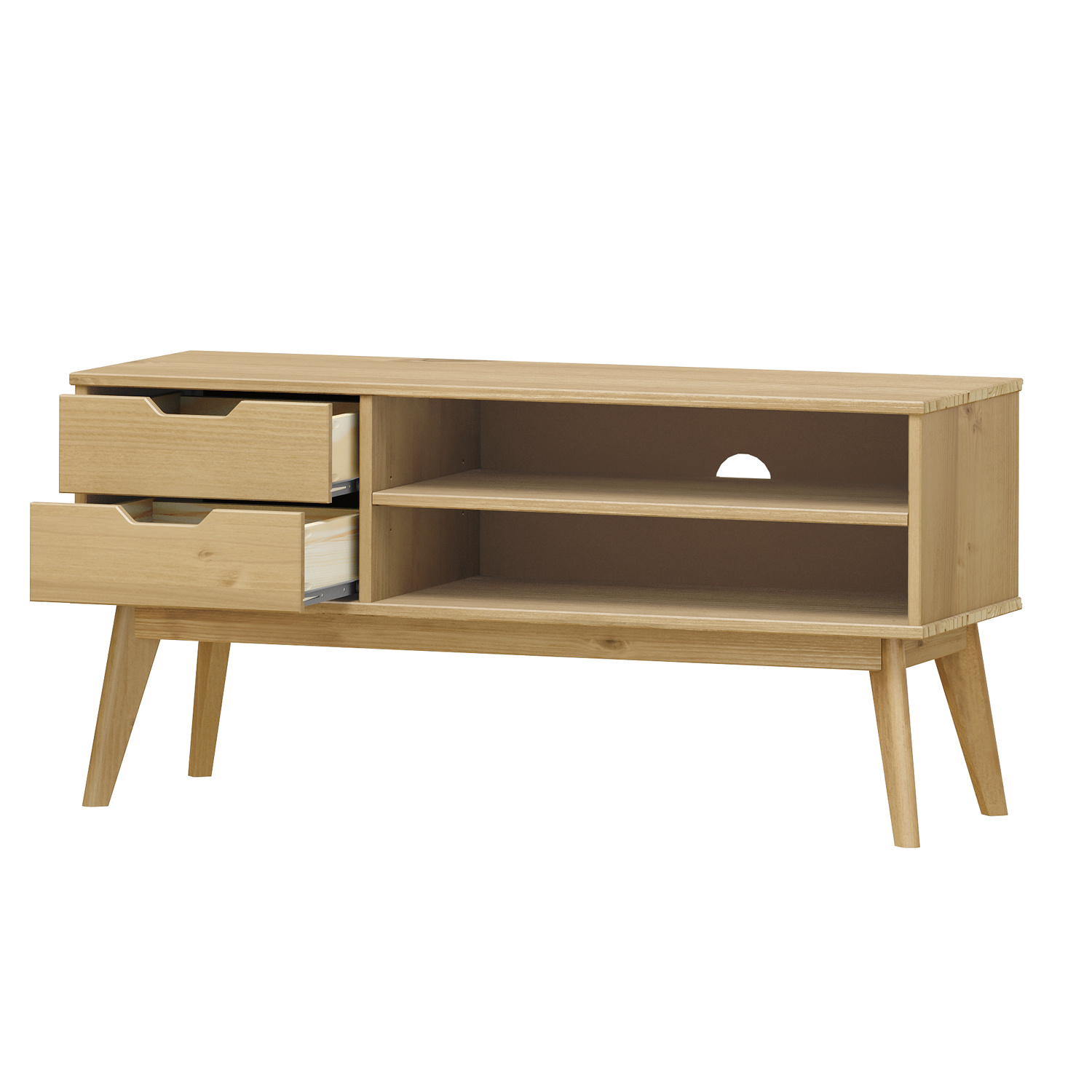 materiál masiv borovice voskovaná v medovém odstínu 2 zásuvky s kovovými pojezdy, 1 police otvor na protažení kabelů