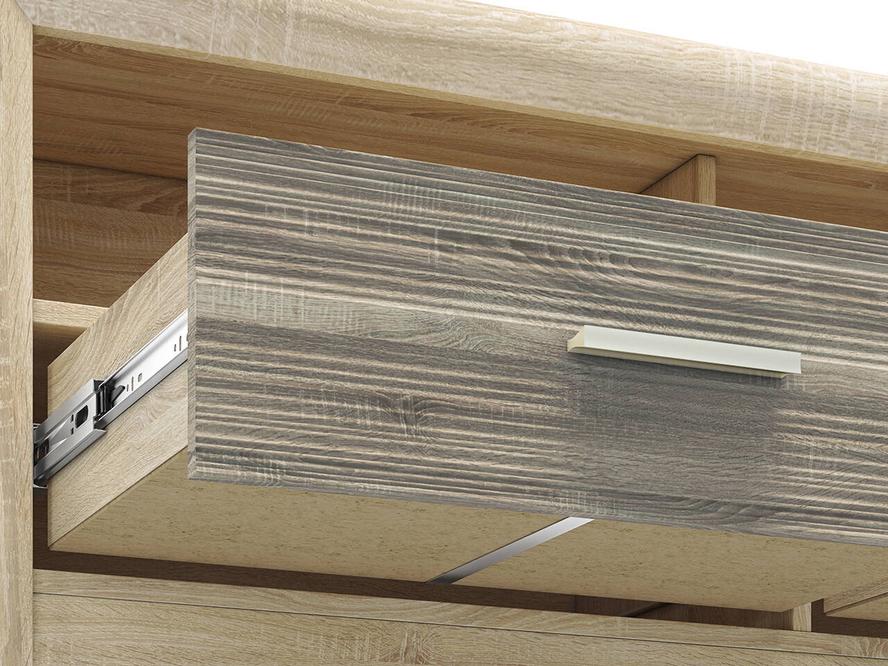 Stolekje vyrobena z kvalitního lamina o tl.16mm a je dotvořena lištami MDF v barevném provedení sonoma světlá/MDF sonoma trufla. Úchytky jsou kovové. Zboží je dodáváno v demontu
