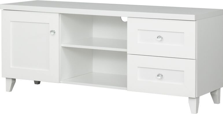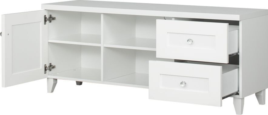 Televizní stolek MAJORKA v dezénu bílá má dva šuplíky, dvířka a jednu polici. Zboží je dodáváno v demontu.