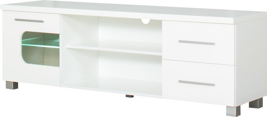 Televizní stolek Panama v dezénu bílý lesk. Stolek má 2 zásuvky, 1 dvířka a osvětlenou LED policí. Zboží dodáváme v demontu.