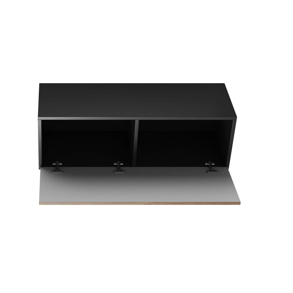 Korpus tv stolku je vyroben z kvalitního lamina v barvě černá, dvířka z MDF v matném provedení v barvě bílá mat. Dvířka nemají úchytku, otevírají se systémem PUSH-CLICK. Uvnitř skříňky je jedna police. Zboží je dodáváno v demontu.