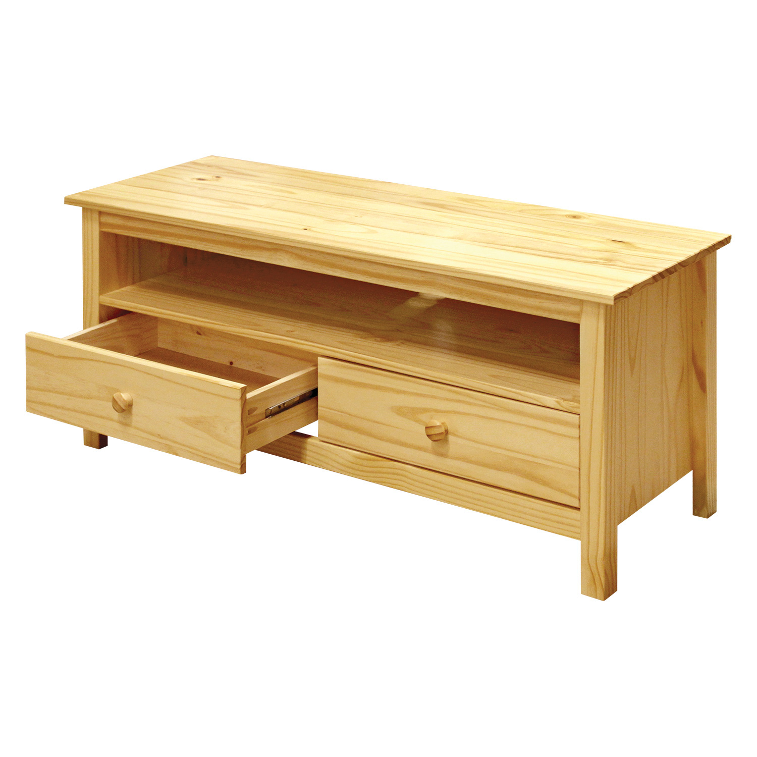 TV stolek 2 zásuvky TORINO v provedení masivní borovice lakovaná nám poskytne příjemný výhled na televizi a nabídne prostor pro uložení televizního magazínu či dálkových ovladačů. Stolek s policí a dvěma zásuvkami s kovovými pojezdy je chytrým řešením do vašeho obývacího pokoje, ložnice i dětského pokoje. Všechny pokoje lze totiž vybavit nábytkem v přírodních barvách ze sestavy TORINO. Zboží je dodáváno v demontu.