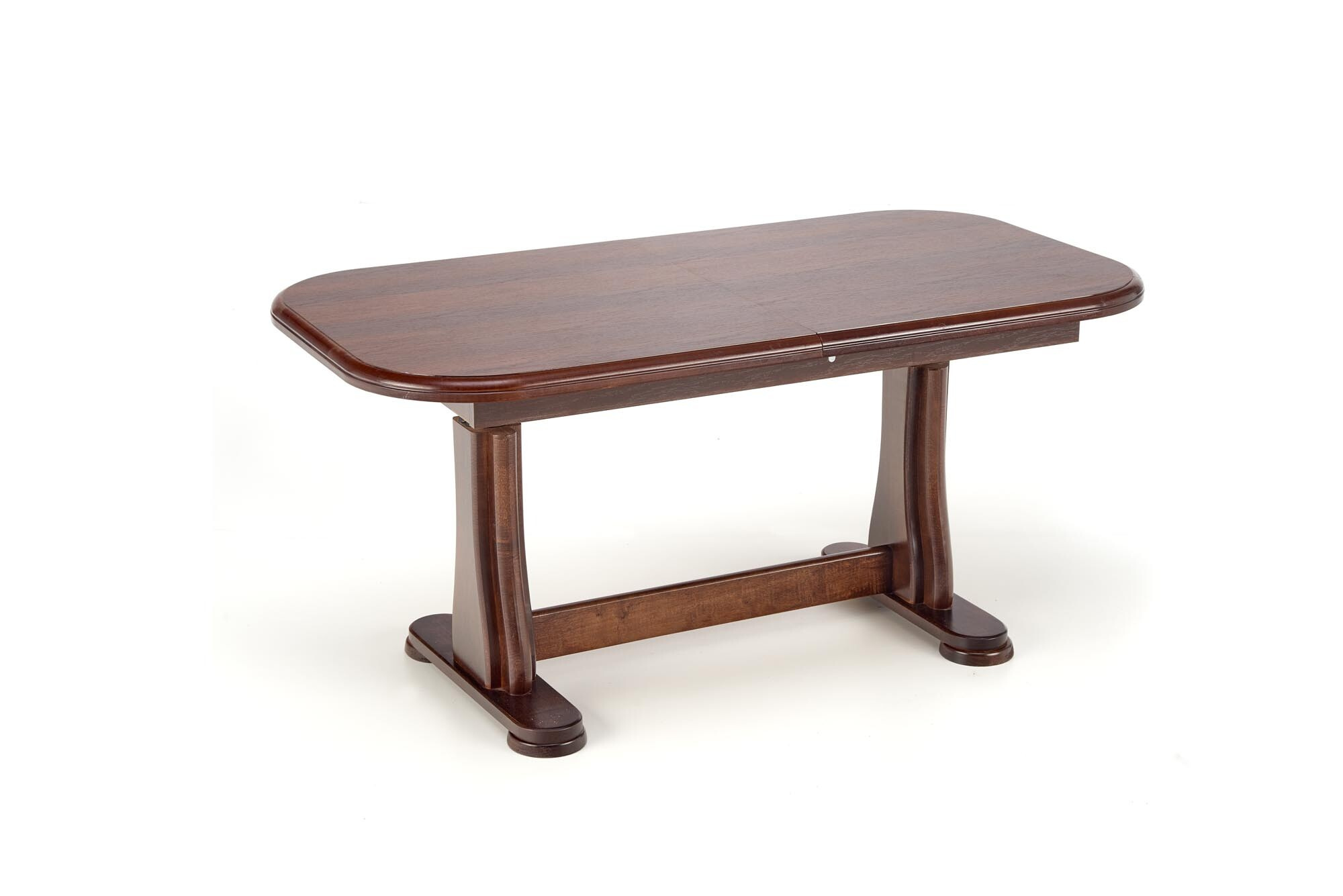 Praktický konferenční stolek TYMON 2 má desku vyrobenou z laminované MDF a nohy z masivního dřeva v barevném provedení tmavý ořech. Stůl během chviličky proměníte díky jednoduchému mechanismu na prostorný jídelní stůl pro 4 osoby. Zboží dodáváme v demontu.