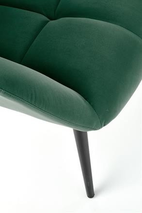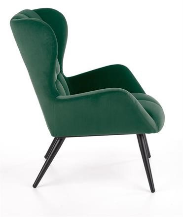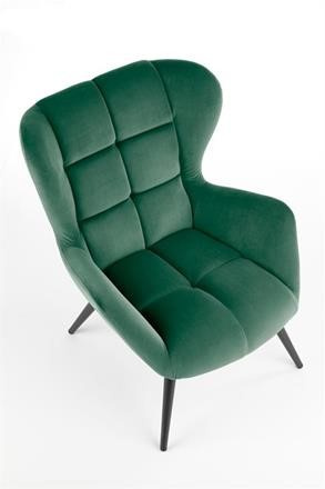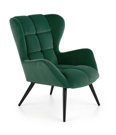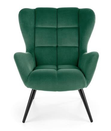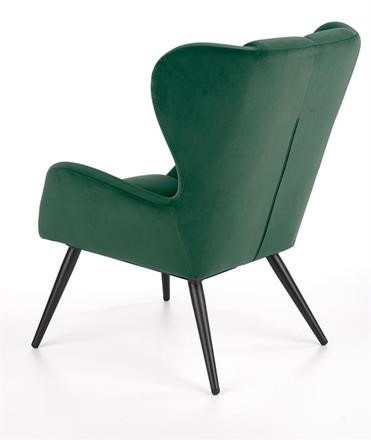 Zajímavě tvarované křeslo je očalouněno zeleným sametem, nohy jsou z masivu v černé barvě. Bude ozdobou vašeho obývacího pokoje.
