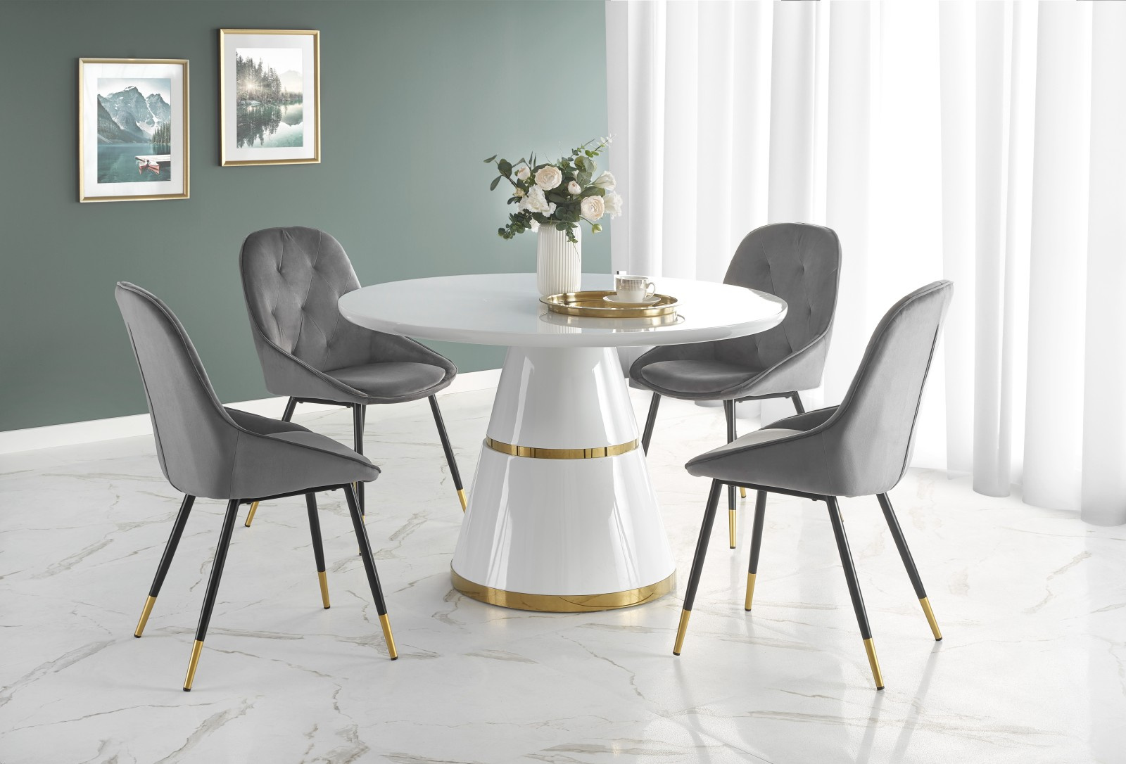 Kulatý jídelní stůl VEGAS bude skvěle zapadat do menších interiérů. Stůl je vyroben z bílé lakované MDF v kombinaci s ocelí chromovanou ve zlaté barvě. Jídelní stůl BRODWAY není rozkládací. Hodí se nejen do domácností, ale hezky se vyjímá i v cukrárnách či kavárnách. Zboží je dodáváno v demontu.