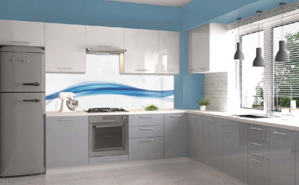 Horní skříňka s odkapávačem je součástí moderní kuchyňské linky VENTO. Korpus je z lamina v barvě bílá, dvířka jsou z materiálu MDF v barvě šedý lesk. Úchytka v barvě chrom o délce 12,8 cm. Zboží je dodáváno v demontu.