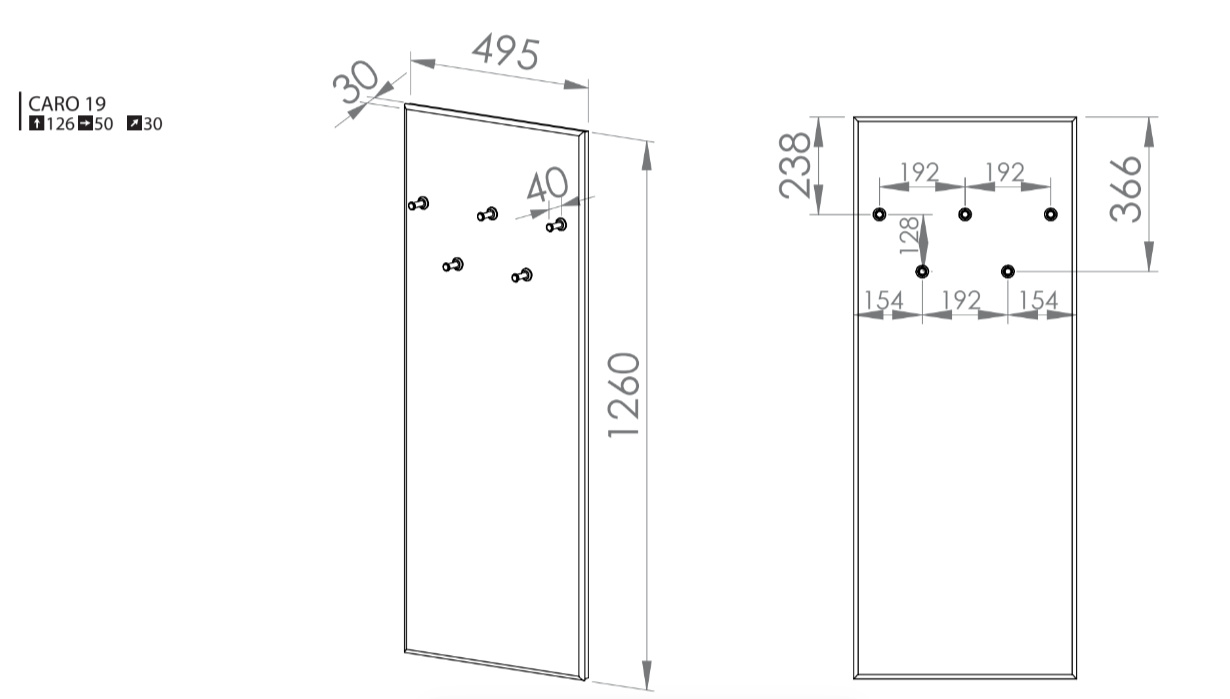 Věšák CARO je očalouněn. Tento věšák je doplněn o 5x černý věšák. Zboží je dodáváno v demontu.