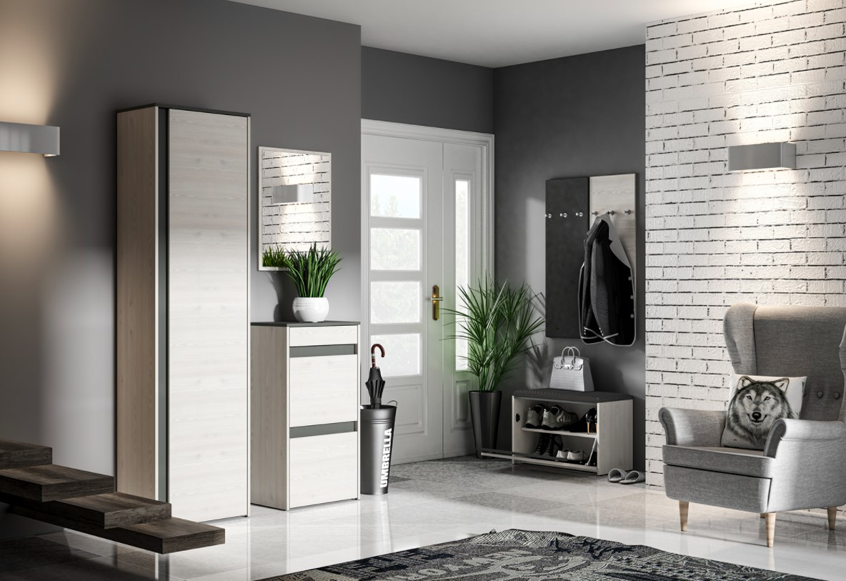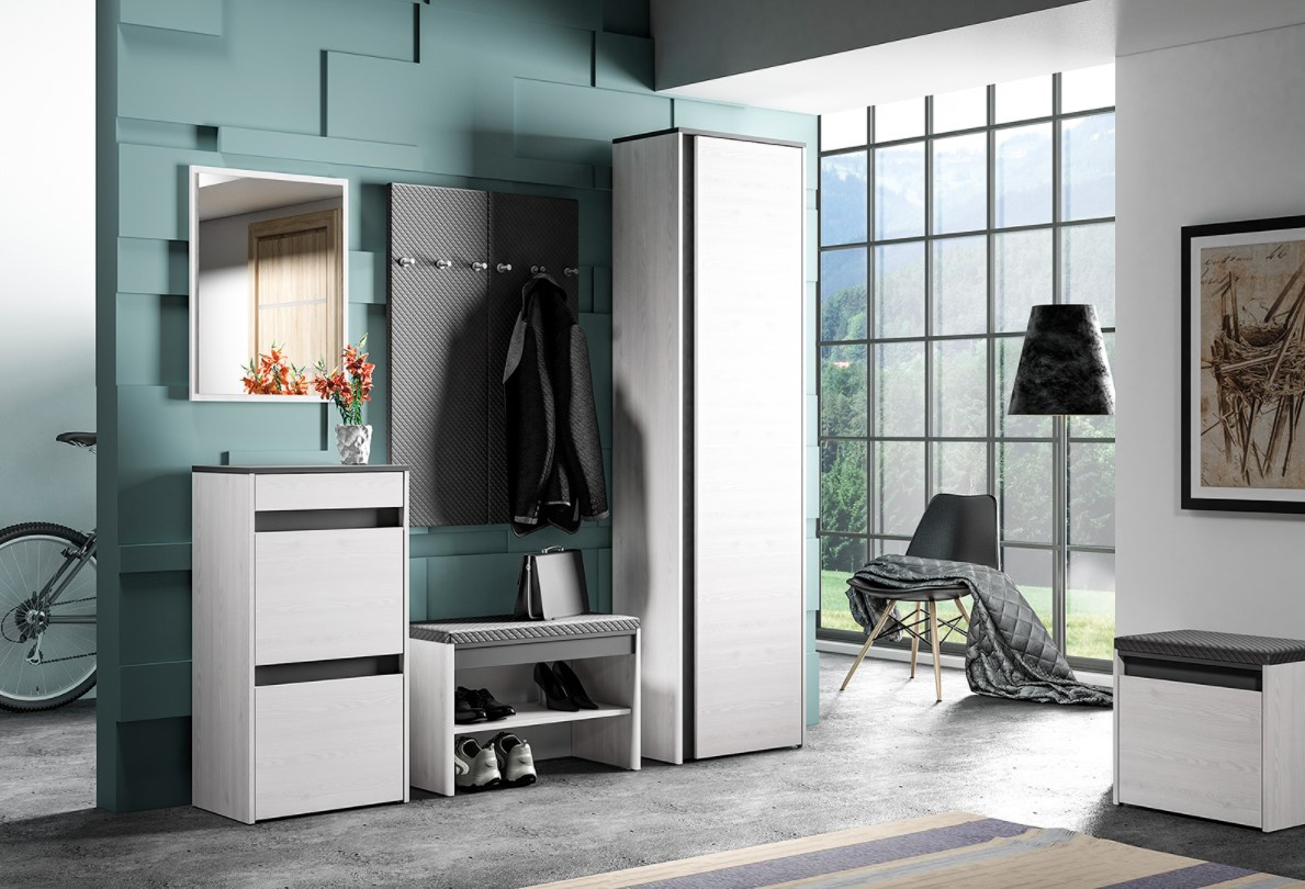 Věšák je vyroben z lamina, o tl. 16 mm odolného proti poškrábání a vysoké teplotě, s ABS hranami potažené látkou v barevném provedení šedá. Sestava Hyga je v moderním provedení zútulní Vaši předsíň. Zboží dodáváme v demontu.