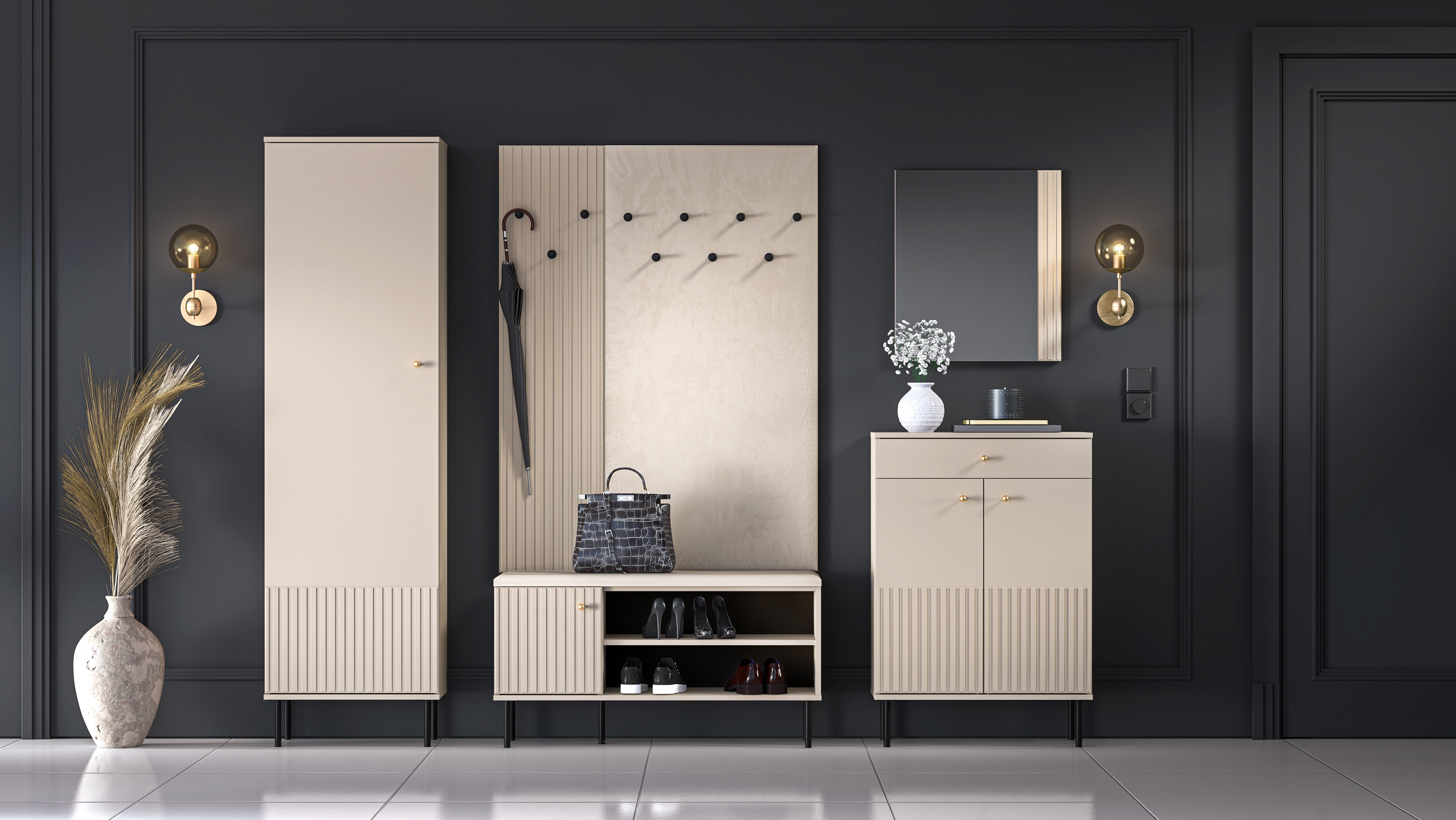 Věšák SOPHIE je vybaven třemi černými držáky na svrchní oděvy. Zboží dodáváme v demontu.