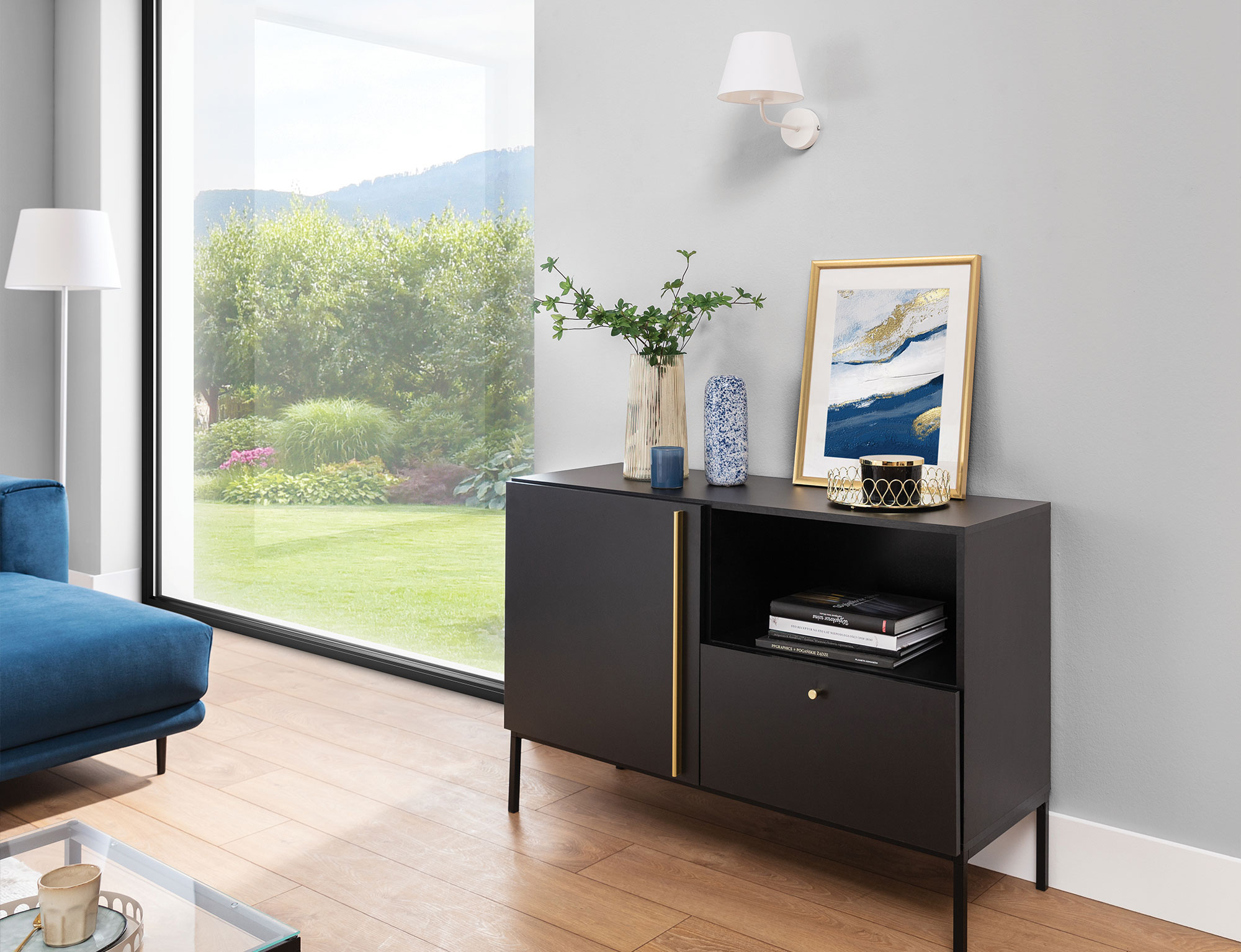 Stůl je vyroben z lamina v barevném provedení dub shannon/perleťově bílá. Stůl má 1 dvířka a 1 zásuvka s kovovými pojezdy. Na zadní části stolu je police a závěsná pružná lanka. V pracovní desce průchodka na kabely a zásuvka se dvěma USB porty pro nabíjení mobilů, tabletů, hodinek a podobně, s napětím 5 V DC, pro současné nabíjení 2 zařízení 1 A nebo 1 zařízení 2 A. Zboží dodáváme v demontu.