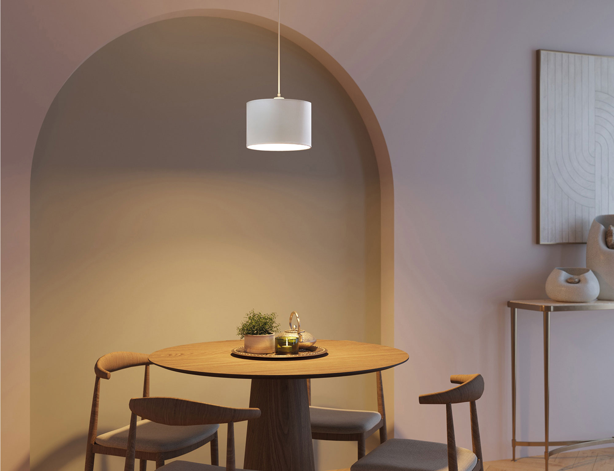 The Vespillo pendant lamp is a stylish and functional lighting element, ideal for modern interiors. It has a maximum light output of 15 W, providing adequate illumination for the space and creating a pleasant atmosphere. The lampshade, made of PVC fabric, gives the lamp an elegant appearance and gently diffuses the light, adding a warm ambiance to the room. The solid steel base ensures durability and stability, and the lamp is equipped with a standard E27 socket, allowing for easy fitting of various types of bulbs, both traditional and energy-saving. Perfect for the living room, dining room, kitchen, or bedroom, the Vespillo pendant lamp combines aesthetics and functionality, enhancing the character of any interior.