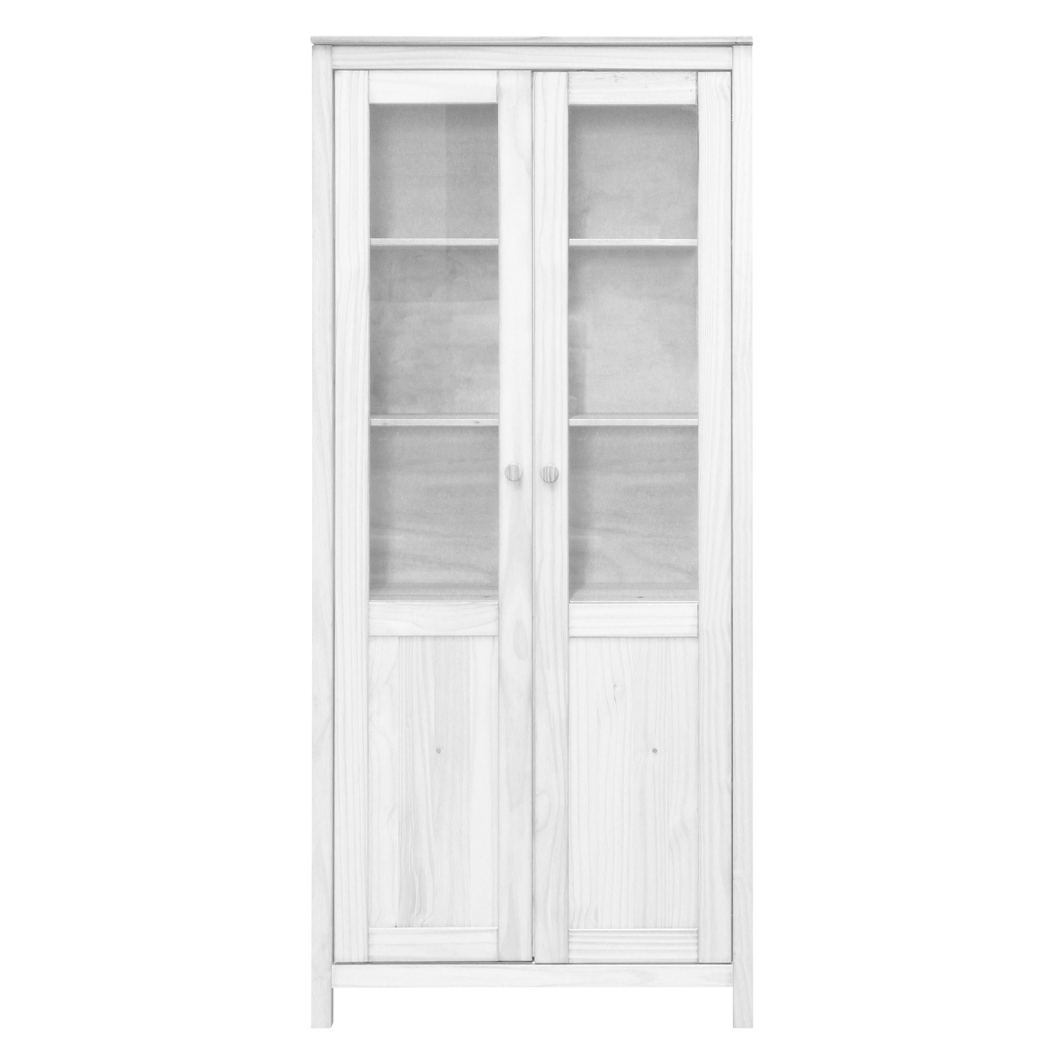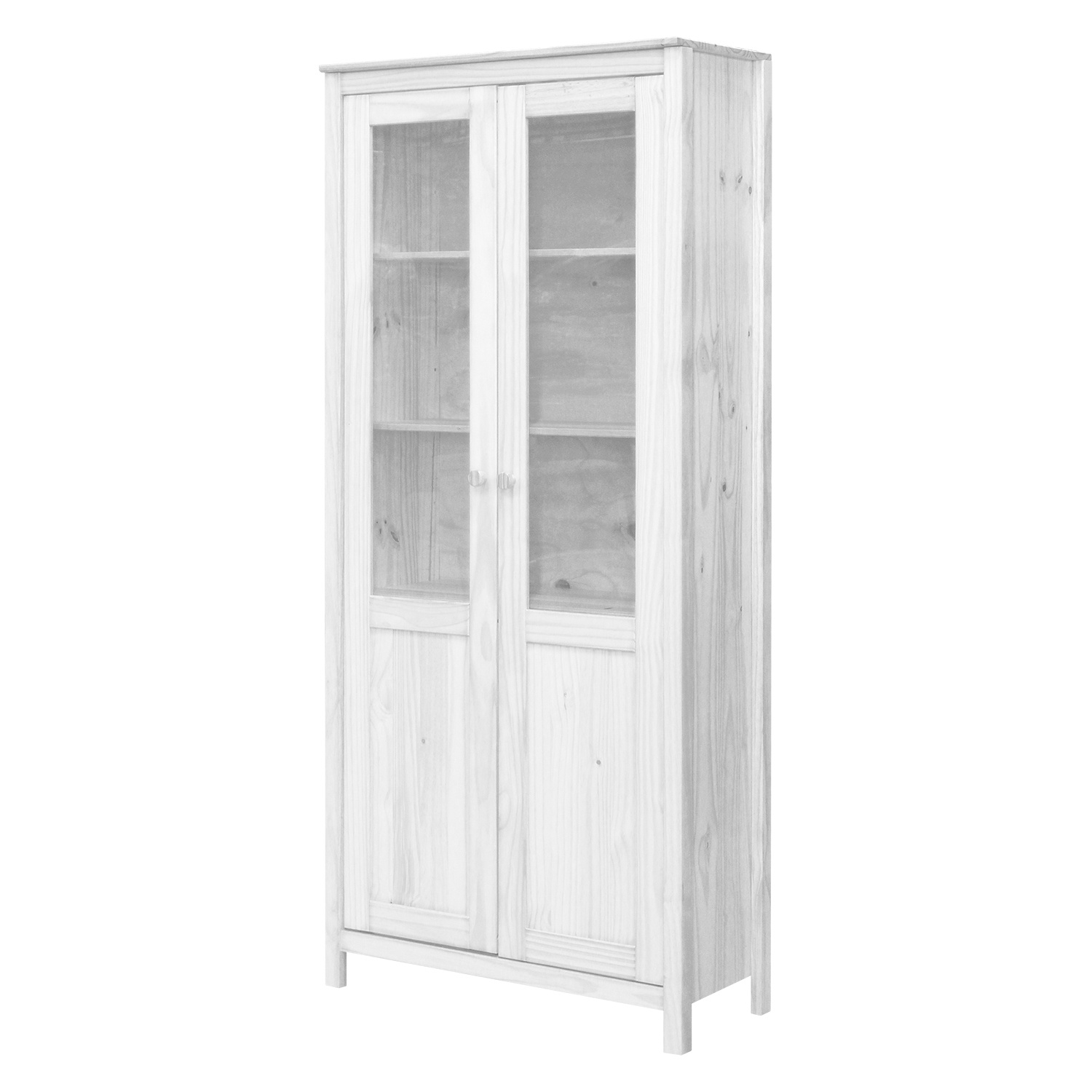 materiál masiv borovice, barevné provedení bílý lak dvoje částečně prosklené dveře, čtyři police