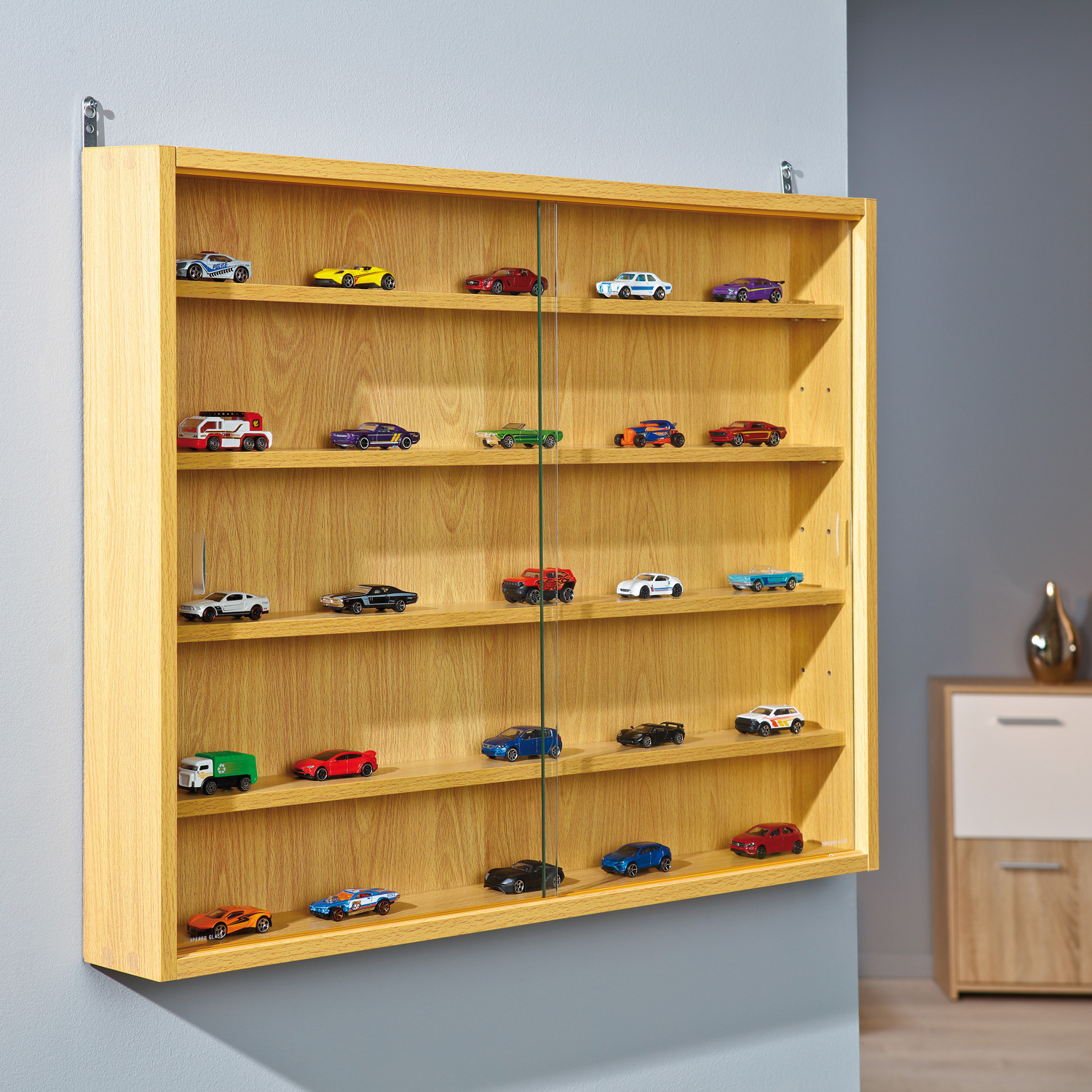 Vitrína ACQUARIO je vyrobena z kvalitního lamina v barevném provedení buk. Má čtyři variabilní poličky, na které vystavíte nejrůznější drobnosti, suvenýry, sbírky i rodinné fotografie. Na vaše poklady se navíc už nebude prášit, budou totiž ukryty za posuvnými bezpečnostními skly. Krásně nazdobená vitrína bude zdobit stěnu všude tam, kde se nachází nábytek v barevném provedení buk. Zboží je dodáváno v demontu.