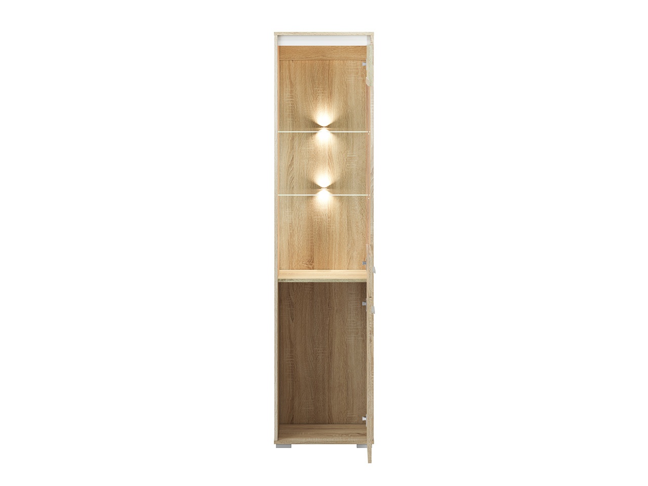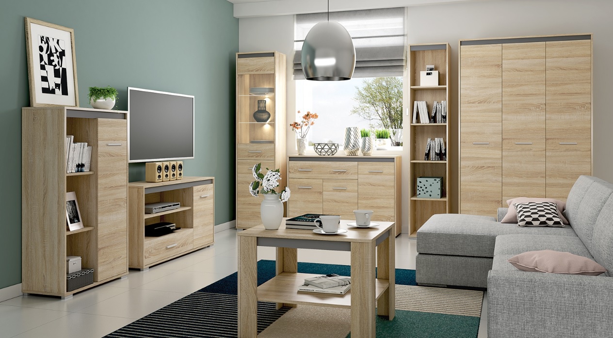 Nábytkový systém AVO je moderní a minimalistický. Nábytek je vyroben z kvalitního lamina, které je odolné proti poškrábání, vlhkosti a vysokým teplotám. Korpus i dvířka jsou v dezénu dub sonoma. Hrana ABS představuje stálost, odolnost proti nárazu, estetickou úpravu. Odolná proti vlhkosti, nedeformuje se a neuvolní od povrchu. Vitína vysoká se dvěma skleněnými policemi. K vitríně je možno dokoupit LED osvětlení 2LED03NB1Z.. Zboží je dodáváno v demontu.