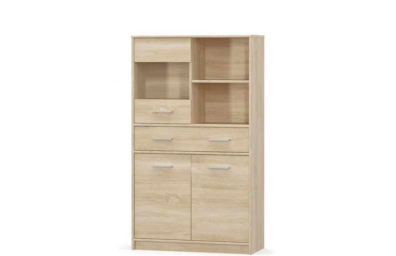 Nízká vitrína Tips 2D1W1S/80 je vyrobena z lamina o síle 16mm.Vitrínu se 2 plnými a částečně prosklenými dvířky a prostornou zásuvkou nabízíme v dezénu dub sonoma. Hrany lamina chrání ABS o síle 0,5mm. Pojezdy zásuvky jsou kovové, úchytky plastové. Nábytek TIPS je určen do předsíně, obývacího nebo studentského pokoje. Zboží dodáváme v demontu.