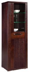 Vitrína je vyrobena z masivu dub v barevném provedení wenge. Obsahuje jednu zásuvku a dvoje dvířka. Jedny dvířka jsou prosklené a obsahují skleněné police. Má decentní nožičky. Úchytky jsou kovové. K této vitríně lze nakombinovat další komponenty ze systému REMI. Možnost výběru z několika odstínů moření dřeva. Vámi zvolenou variantu moření uveďte v objednávce..