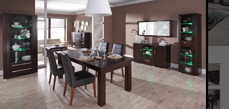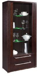 Vitrína je vyrobena z masivu dub v barevném provedení wenge. Obsahuje dvě zásuvky a dvoje dvířka, která jsou prosklená. Za prosklenou částí jsou skleněné police. Má decentní nožičky. Úchytky jsou kovové. K této vitríně lze nakombinovat další komponenty ze systému REMI. Možnost výběru z několika odstínů moření dřeva. Vámi zvolenou variantu moření uveďte v objednávce.