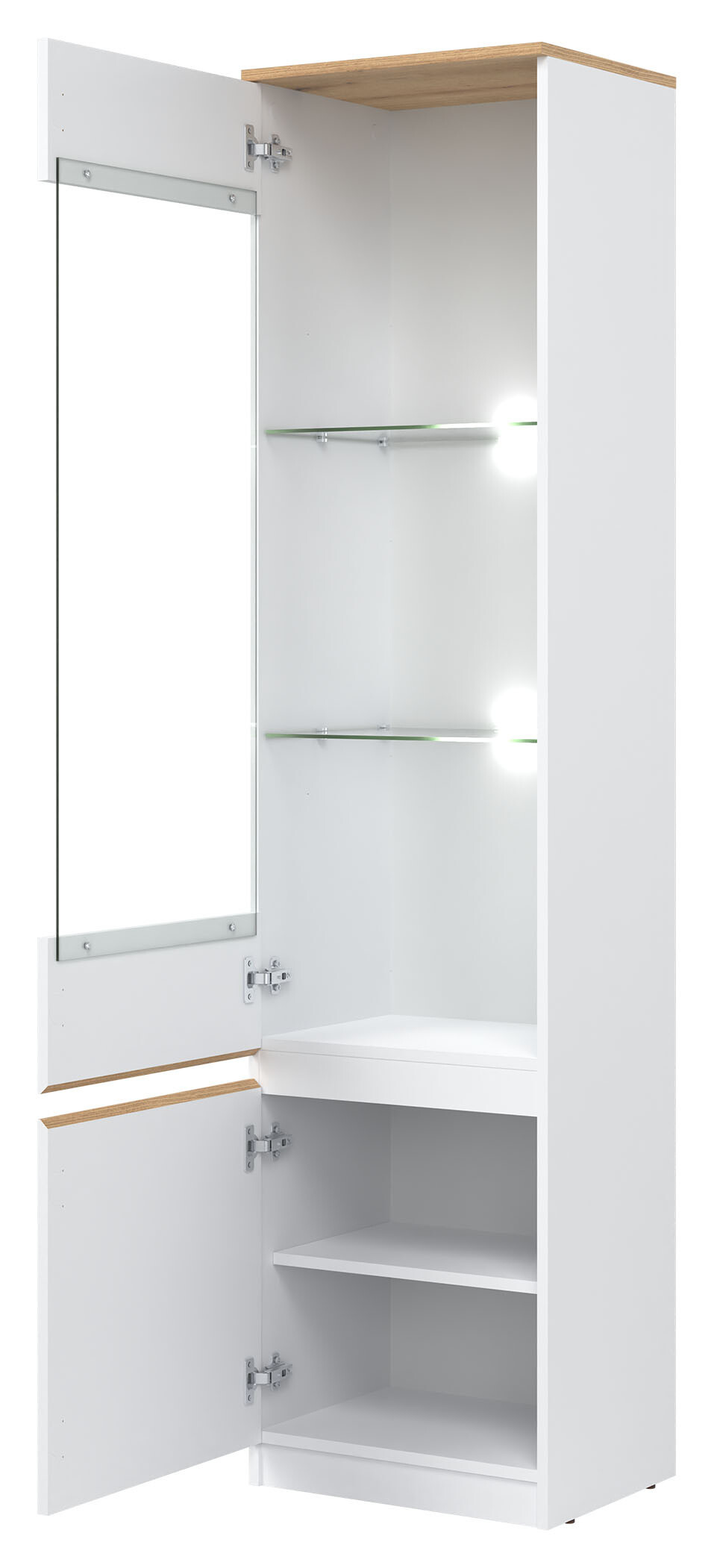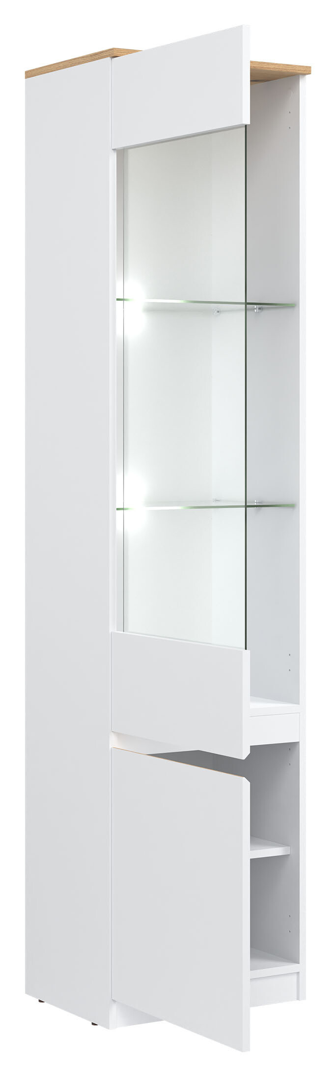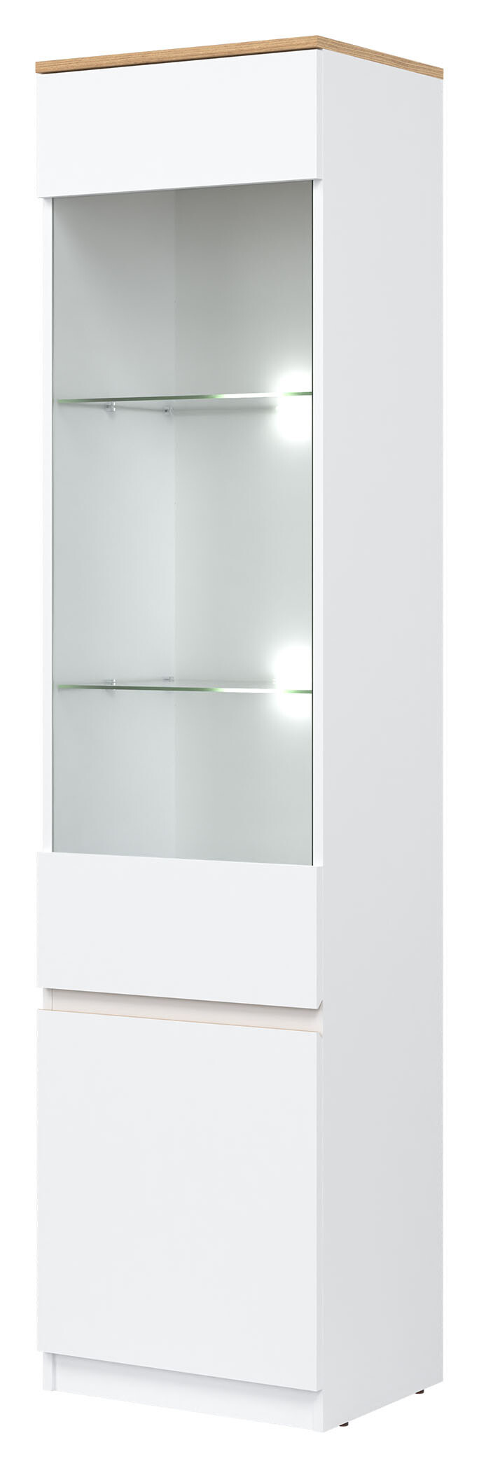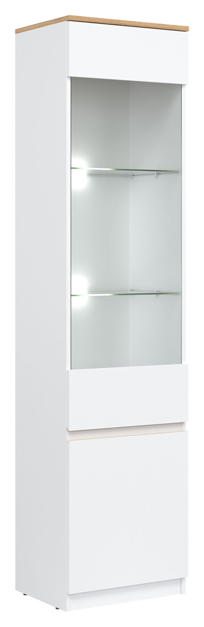 2. Vitrína REMI RM7 L/P s LED osvětlením bílá/dub evoke