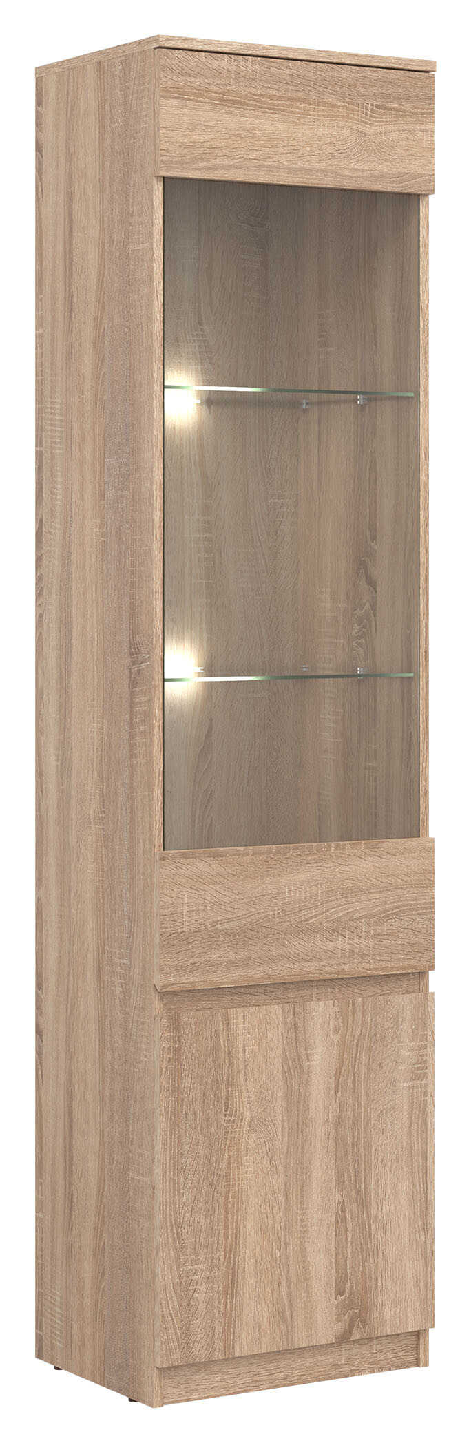2. Vitrína REMI RM7 L/P s LED osvětlením dub sonoma
