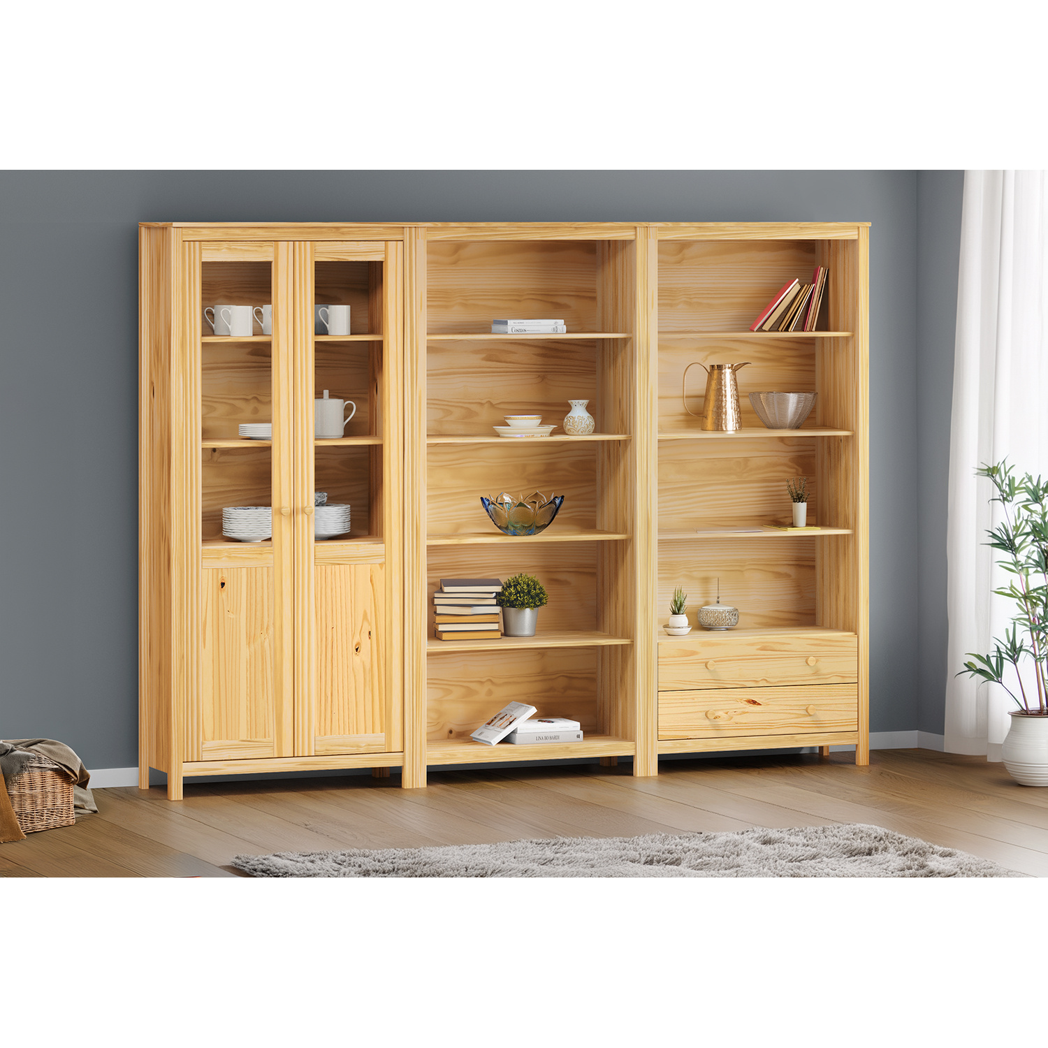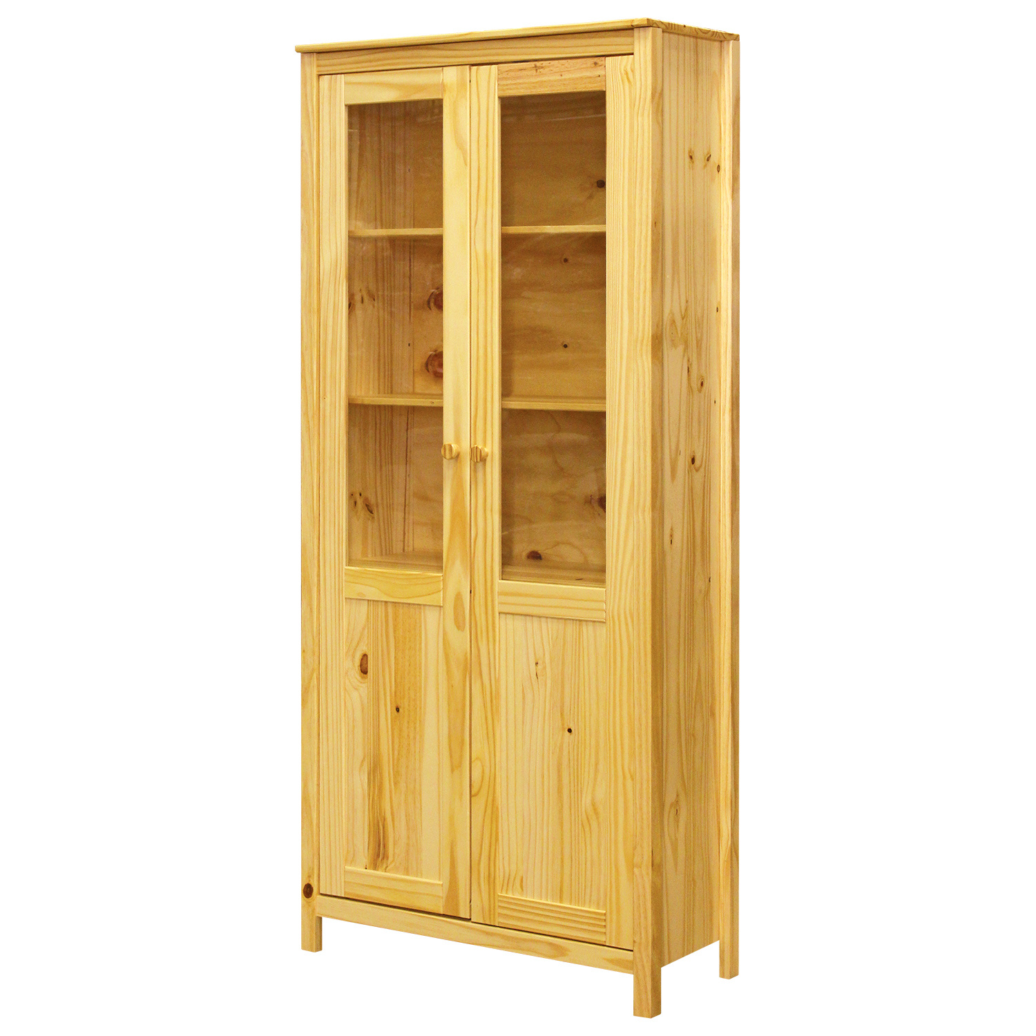 Vitrína v provedení masiv borovice v lakovaném provedení, krásně vystaví cenné věci a schová, co je potřeba. Vitrína má částečně prosklené dveře, za kterými se nacházejí čtyři pevné police. Poslouží tedy na dokumenty a knihy v pracovně, na pohádkové knížky a hračky v dětském pokoji, či na suvenýry a porcelán v obývacím pokoji. Vitrína nahradí i obyčejnou policovou knihovnu. Zboží dodáváme v demontu.