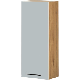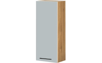 Horní skříňka je vyrobena z lamina v provedení korpus dub soma tmavý o tl. 16mm, dvířka MDF šedá. Ve skříňce je použito kování s tichým dojezdem. Možnost otvírání dvířek pravé/ levé. Skříňky obsahují kompletní kování, úchytky a návod k sestavení. Zboží dodáváme v demontu.