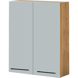 Horní skříňka je vyrobena z lamina v provedení korpus dub soma tmavý o tl. 16mm, dvířka MDF šedé. Ve skříňce je použito kování s tichým dojezdem. Skříňky obsahují kompletní kování, úchytky a návod k sestavení. Zboží dodáváme v demontu.
