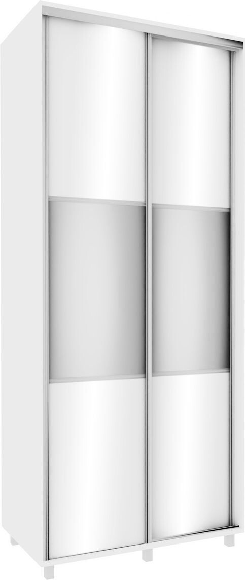 Vysoká šatní skříň z kvalitního lamina v korpusu bílá, posuvnými dveřmi v bílém lesku se zrcadlem. Skříně jsou vyrobeny z precizně vyrobených a odolných prvků. Zboží je dodáváno v demontu.