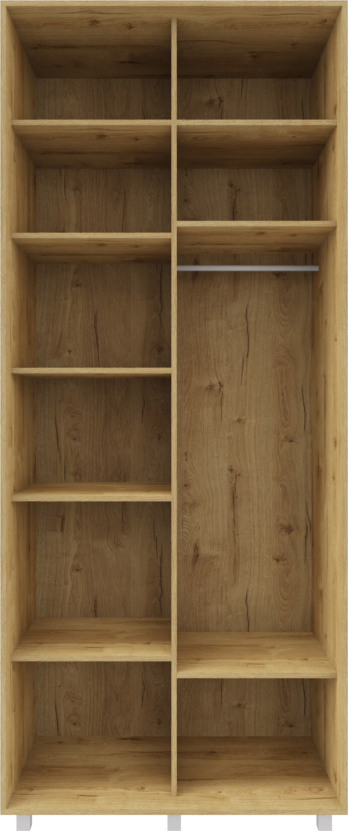 Prostorná a funkční skříň z kvalitního lamina v barvě dub soma tmavý je vybavena zrcadly na dvou posuvných dveřích. Skříně jsou vyrobeny z precizně vyrobených a odolných prvků. Zboží je dodáváno v demontu.