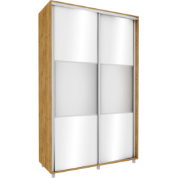 Vysoká šatní skříň z kvalitního lamina v korpusu dub soma tmavý, posuvnými dveřmi v bílém lesku se zrcadlem. Skříně jsou vyrobeny z precizně vyrobených a odolných prvků. Zboží je dodáváno v demontu.