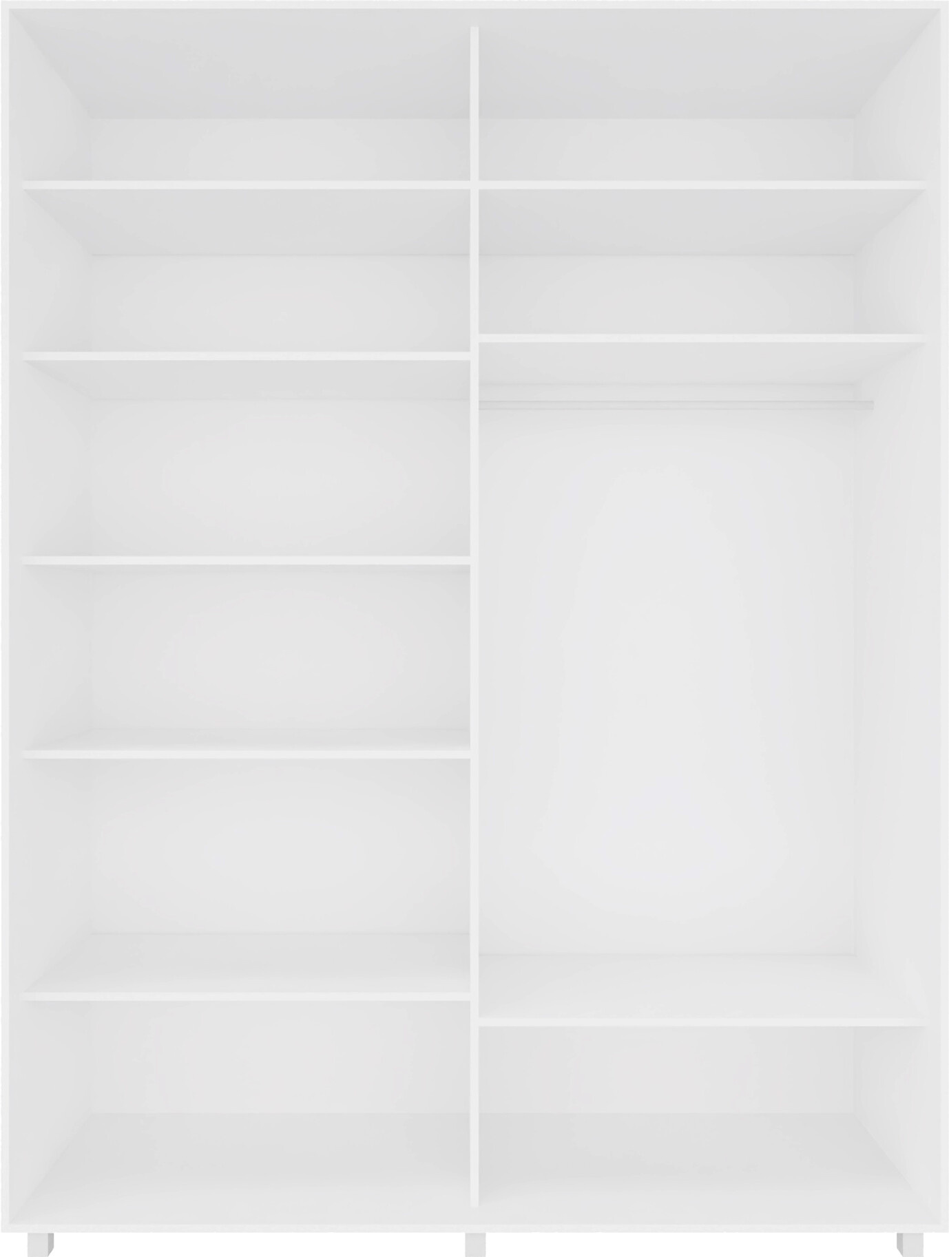 Vysoká šatní skříň z kvalitního lamina v korpusu bílá, posuvnými dveřmi v bílém lesku se zrcadlem. Skříně jsou vyrobeny z precizně vyrobených a odolných prvků. Zboží je dodáváno v demontu.