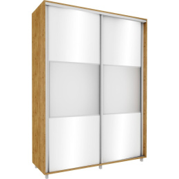 Vysoká šatní skříň z kvalitního lamina v korpusu dub soma tmavý, posuvnými dveřmi v bílém lesku se zrcadlem. Skříně jsou vyrobeny z precizně vyrobených a odolných prvků. Zboží je dodáváno v demontu.