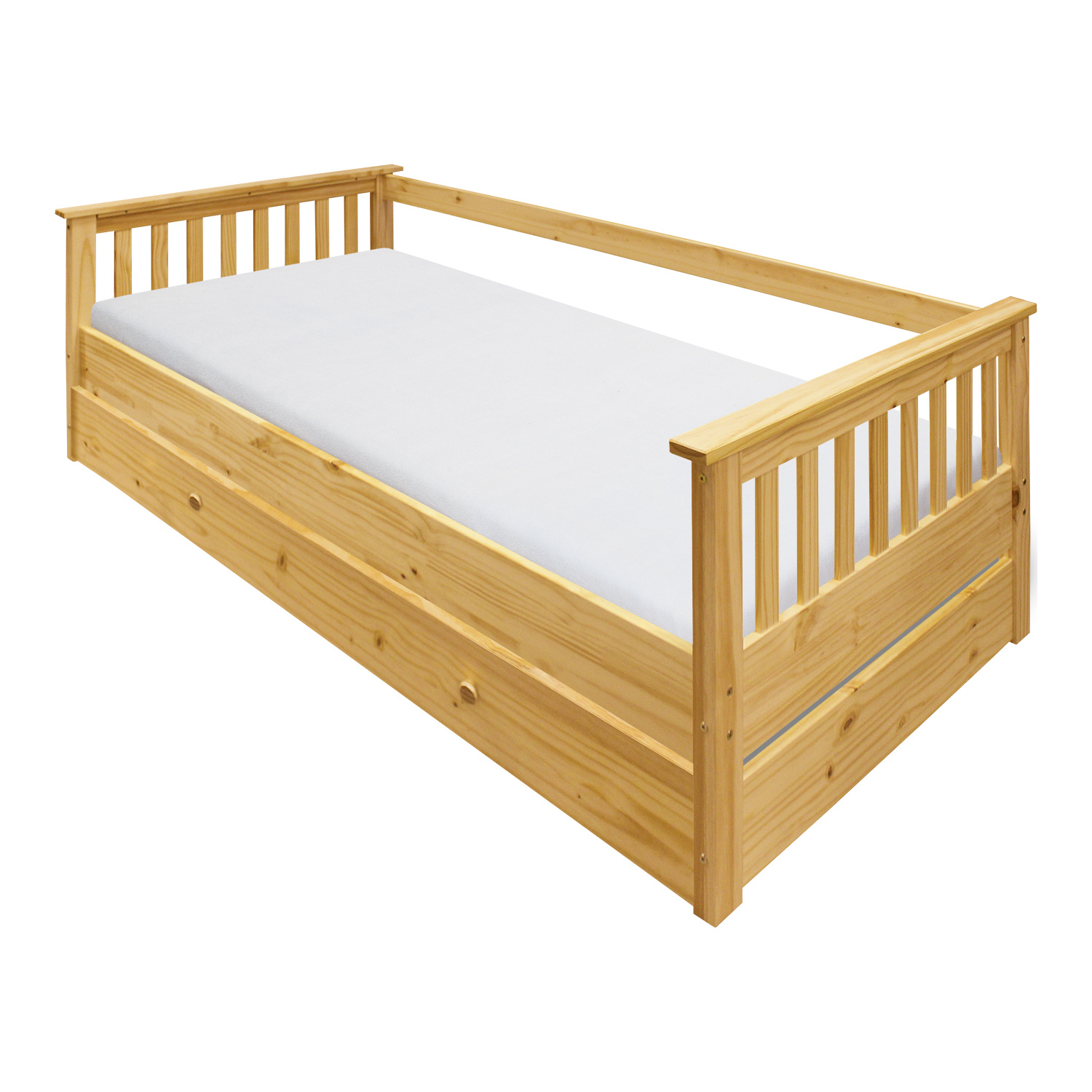 Materiál masiv borovice, lakované provedení, výsuvná na kolečkách, cena bez matrace, maximální doporučená výška matrace 14 cm, doporučený rozměr matrace 90 × 200 cm vhodná jako výsuvná přistýlka k pohovce 8085.