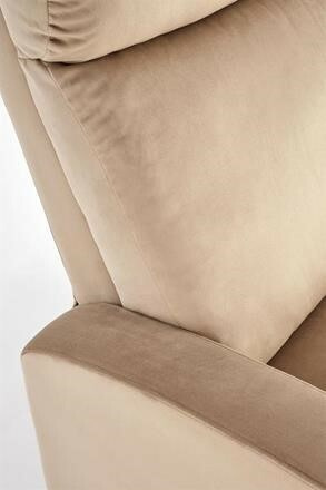Křeslo Wonder je čalouněné sametovou látkou v béžové barvě. Má zabudovaný knoflík, díky kterému se dá velmi jednoduchým způsobem rozložit. Křeslo v rozloženém stavu umožňuje téměř úplné ležení a zároveň má výsuvnou podnožku, která umožňuje pohodlné položení nohou. Područky poskytují pohodlnou oporu pro ruce během odpočinku. Čalouněné křeslo je navíc vybaveno funkcí kolébky, díky které se můžete v křesle mírně pohupovat. Maximální nosnost 120 kg.