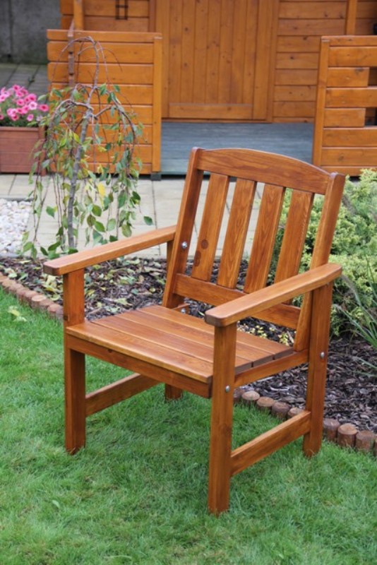 Masivní zahradní křeslo české výroby je vyrobeno z masivního dřeva borovice, síla materiálu 28, 32 mm. Toto zahradní křeslo má vysoce kvalitní opracování a je stabilní, pevné provedení. Zahradní křeslo je bez povrchové úpravy. Křeslo je dodáváno v demontu včetně spojovacího materiálu, plánku na montáž, návodu na údržbu a povrchovou úpravu.