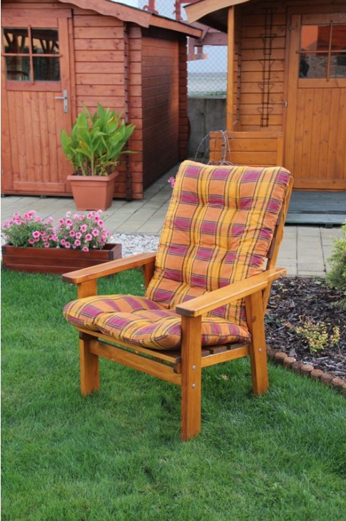 Masivní zahradní křeslo české výroby s polstrem je vyrobeno z masivního dřeva borovice, síla materiálu 28 mm. Táto zahradní křeslo má vysoce kvalitní opracování a je stabilní, pevné provedení. Zahradní křeslo je bez povrchové úpravy. Křeslo je dodáváno v demontu včetně spojovacího materiálu, plánku na montáž, návodu na údržbu a povrchovou úpravu.