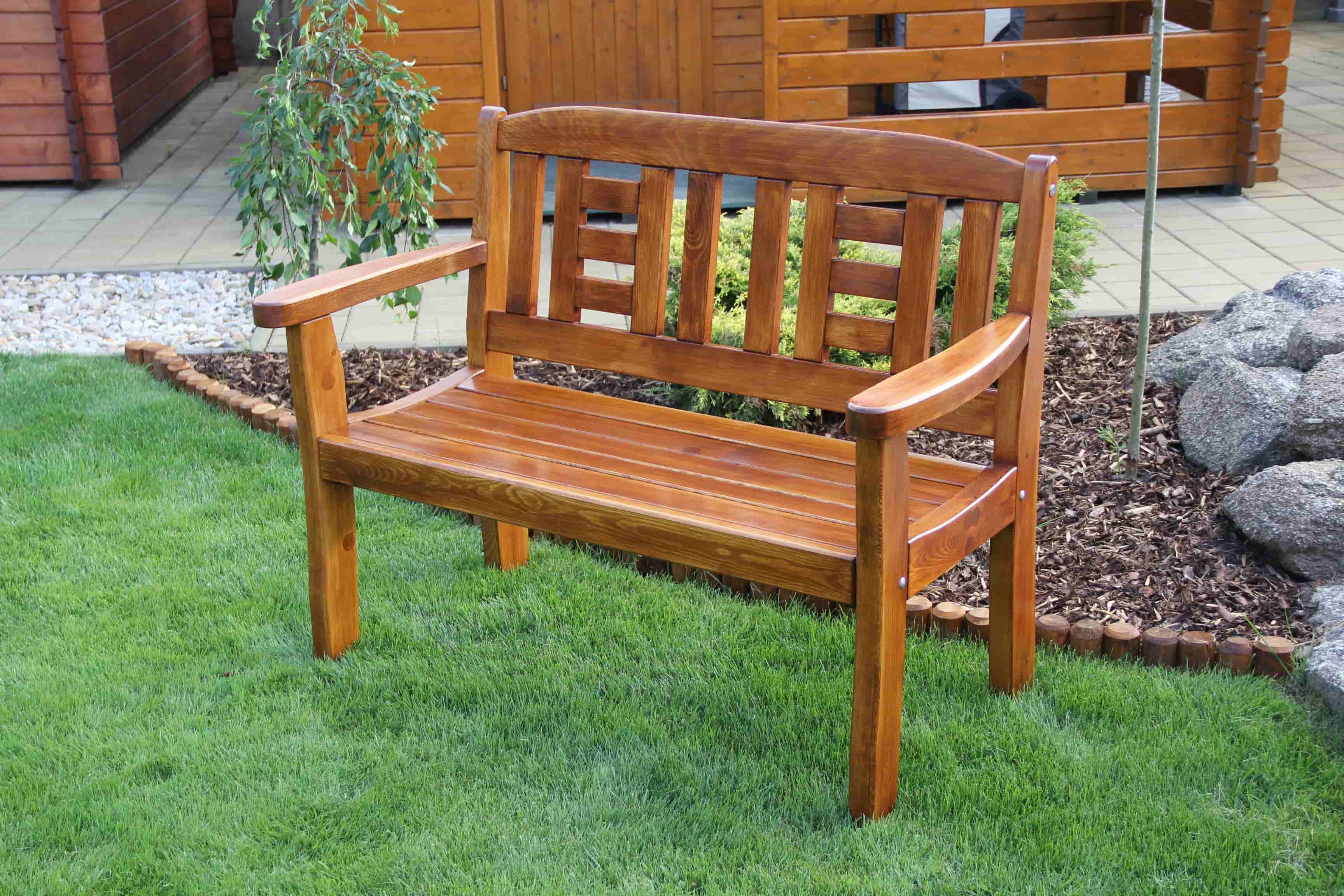 Masivní zahradní lavice české výroby je vyrobena z masivního dřeva borovice, síla materiálu 42, 28 mm. Tato zahradní lavice s opěradlem má vysoce kvalitní opracování a je stabilní, pevné provedení. Lavice je dodávána v demontu včetně spojovacího materiálu, plánku na montáž, návodu na údržbu a povrchovou úpravu.