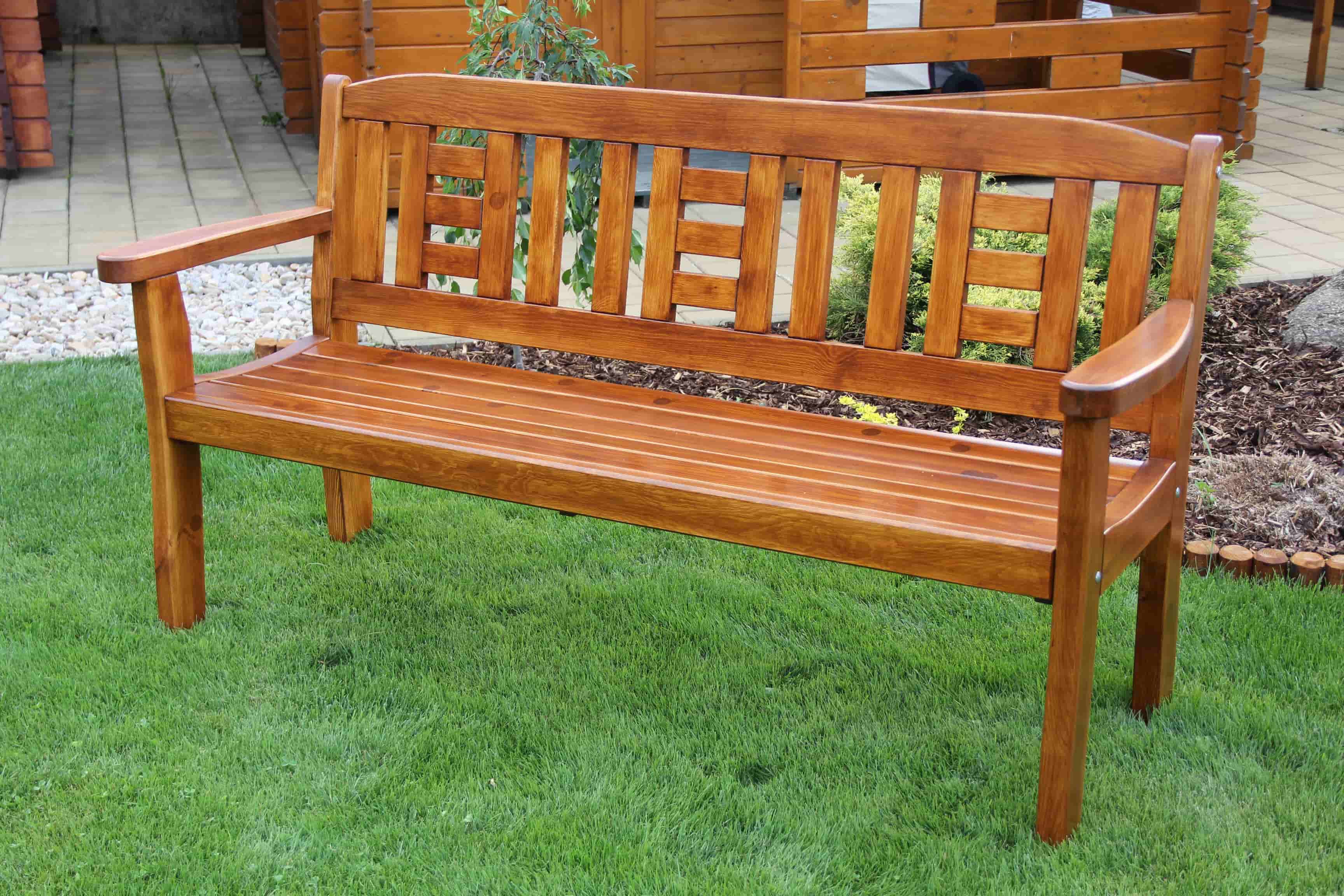 Masivní zahradní lavice české výroby je vyrobena z masivního dřeva borovice, síla materiálu 42, 28 mm. Tato zahradní lavice s opěradlem má vysoce kvalitní opracování a je stabilní, pevné provedení. Zahradní lavice je bez povrchové úpravy. Lavice je dodávána v demontu včetně spojovacího materiálu, plánku na montáž, návodu na údržbu a povrchovou úpravu.