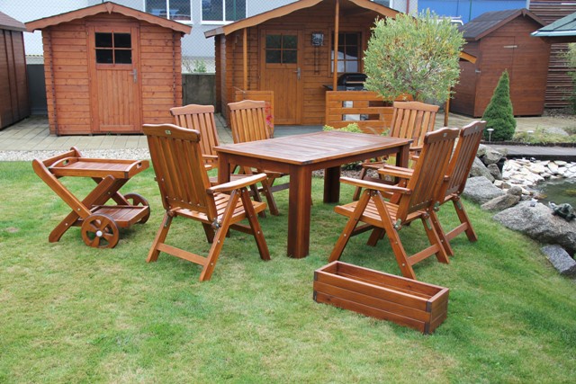 Masivní zahradní sestava české výroby je vyrobena z masivního dřeva borovice, síla materiálu 28 mm. Tato zahradní sestava má vysoce kvalitní opracování a je stabilní, pevné provedení. Sestava Mevan je dodávána v demontu včetně spojovacího materiálu, plánku na montáž, návodu na údržbu a povrchovou úpravu.
