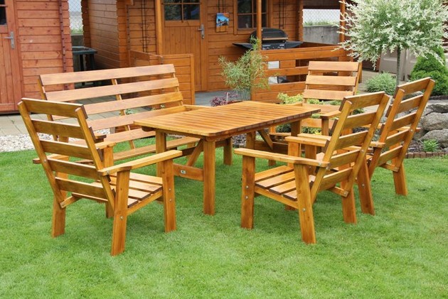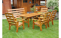 Masivní zahradní sestava české výroby je vyroben z masivního dřeva borovice, síla materiálu 28 mm. Táto zahradní sestava má vysoce kvalitní opracování a je stabilní, pevné provedení. Sestava je dodávána v demontu včetně spojovacího materiálu, plánku na montáž,návodu na údržbu a povrchovou úpravu.