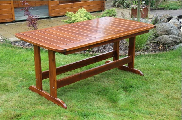 Masivní zahradní stůl české výroby je vyroben z masivního dřeva borovice, síla materiálu 28 mm. Tento zahradní stůl má vysoce kvalitní opracování a je stabilní, pevné provedení. Stůl je dodáván v demontu včetně spojovacího materiálu, plánku na montáž,návodu na údržbu a povrchovou úpravu.