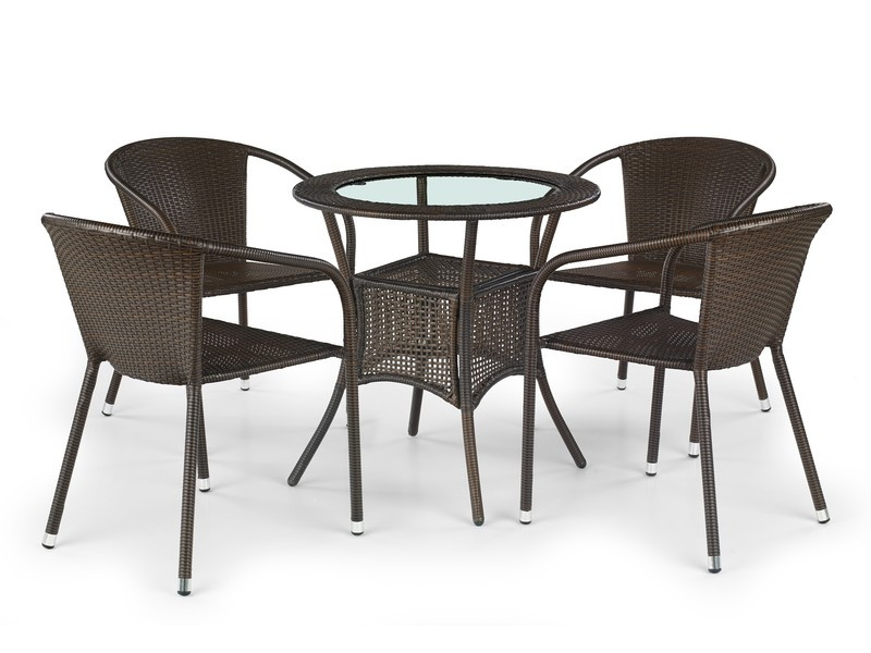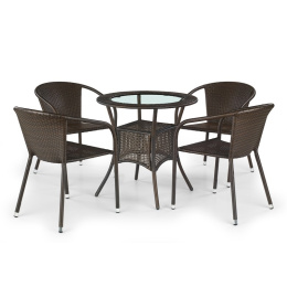 Zahradní stůl je vyroben v kombinaci sklo / ratan syntetický v barvě tmavě hnědá. Deska stolu je skleněná a po obvodu ji zdobí tmavý pruh z ratanu. Součástí konstrukce zahradního stolu je polička pro odložení různých věcí, jako například, tiskovin nebo cukru ke kávě. Díky odolnosti materiálů, ze kterých je zahradní stůl zhotoven, jej lze využít i v komerčních prostorách, jako třeba v letních zahrádkách restaurací a kaváren.
