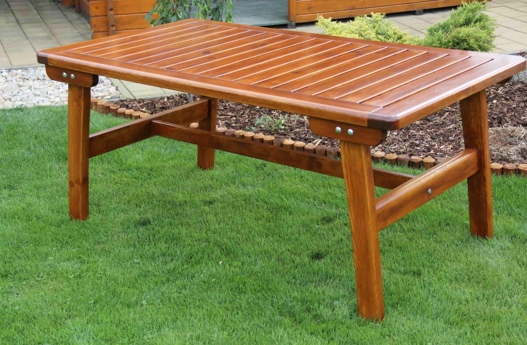 Masivní zahradní stůl české výroby je vyroben z masivního dřeva borovice, síla materiálu 42,28 mm. Tento zahradní stůl má vysoce kvalitní opracování a je stabilní, pevné provedení. Zahradní stůl je bez povrchové úpravy. Stůl je dodáván v demontu včetně spojovacího materiálu, plánku na montáž,návodu na údržbu a povrchovou úpravu.