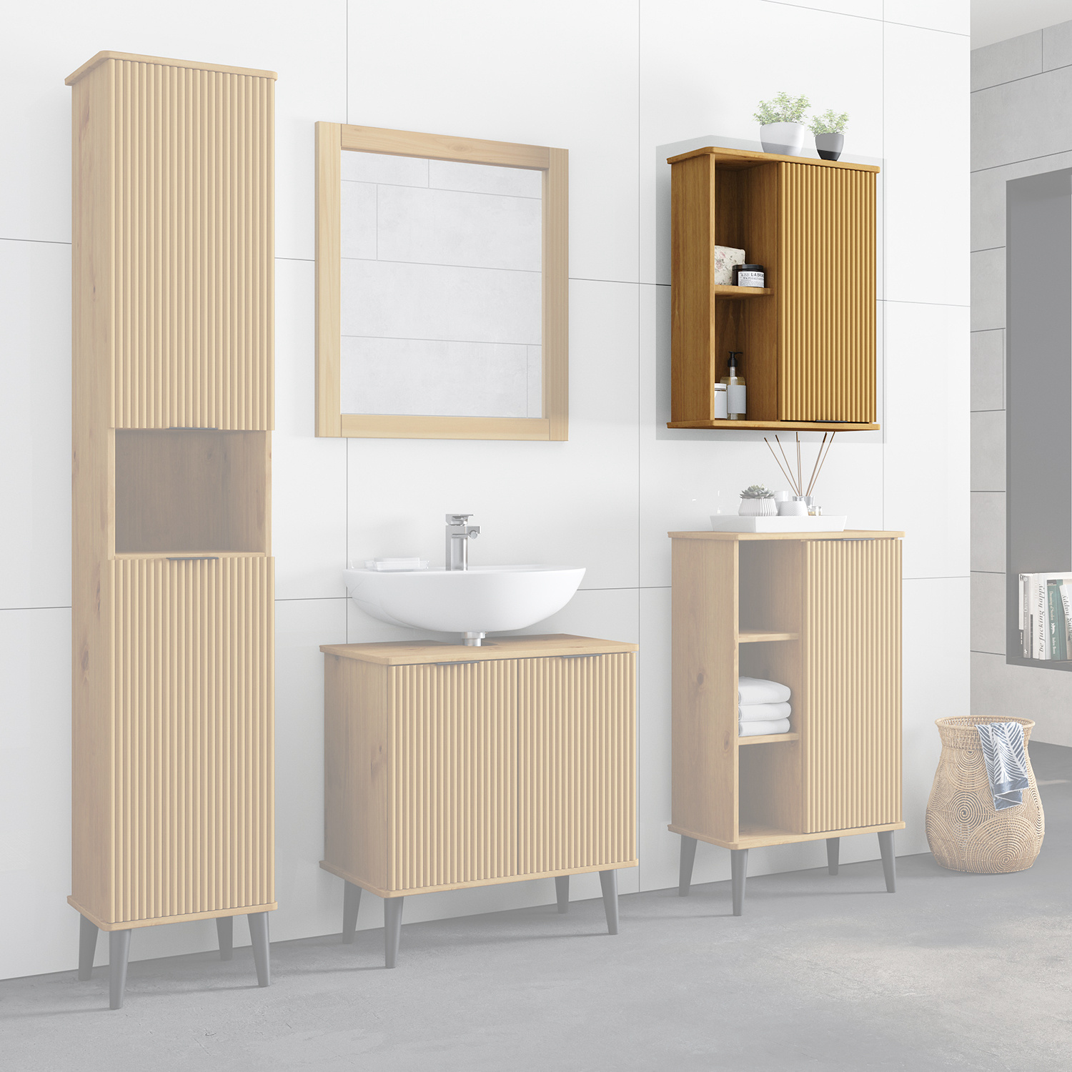 materiál masiv borovice, barevné provedení dub jedna dvířka, za nimi jedna police, dvě niky maximální nosnosti uvedeny v návodu k montáži součást sestavy BALI