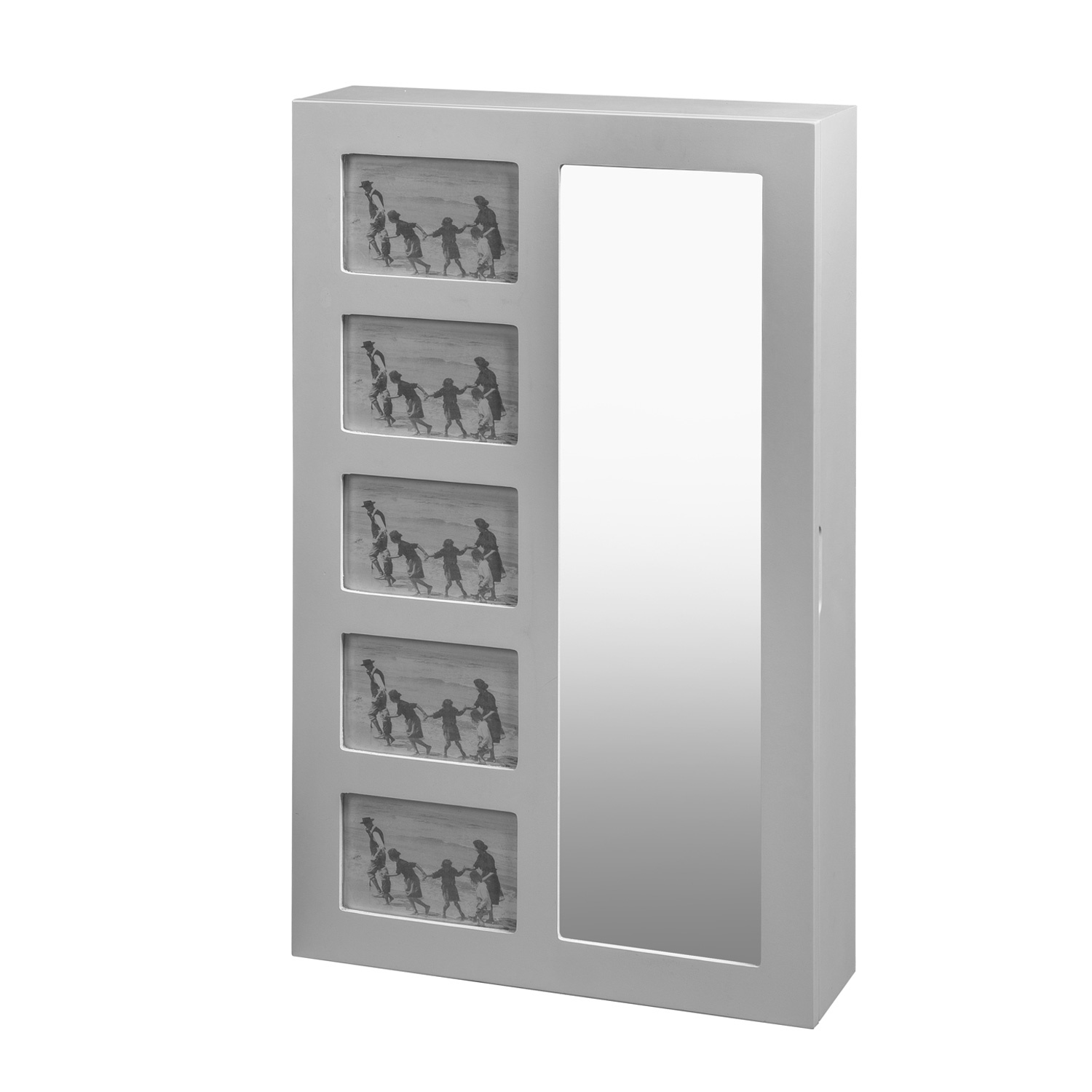 Moderní závěsné zrcadlo je vhodné na zařízení předsíní, obývacích pokojů a ložnic. Rám tohoto zrcadla je vyroben z MDF v barevném provedení bílá. Za zrcadlem se skrývá praktická šperkovnice, která rozzáří každou moderní ložnici nebo předsíň. Vedle zrcadla se nachází pět rámečků na fotografie. Zboží dodáváme v demontu.